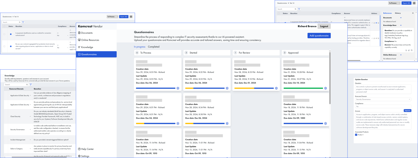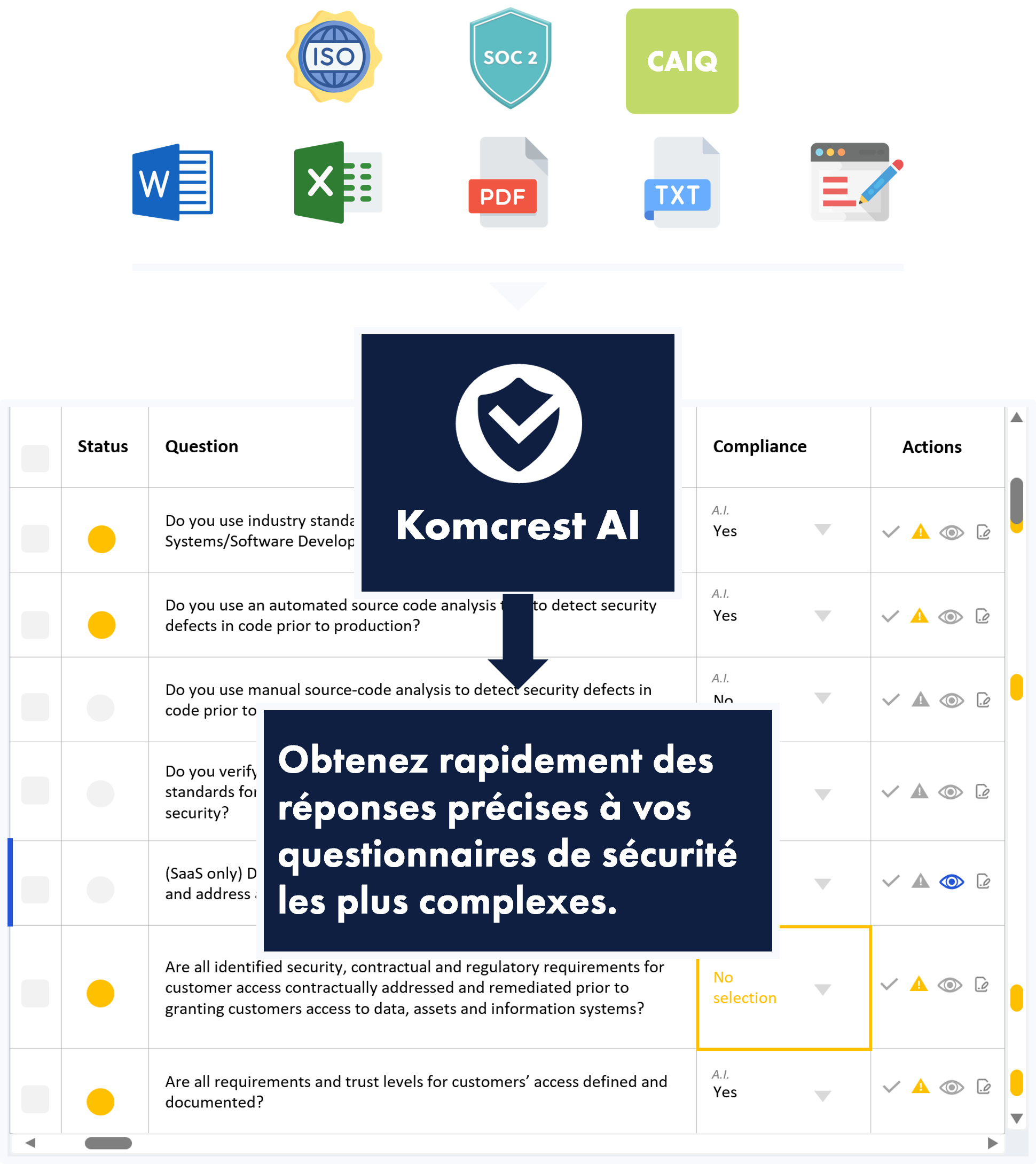 En tirant parti de l'IA, Komcrest réduit de considérablement le temps consacré aux examens de sécurité et de conformité fastidieux. Il ne s'agit pas seulement de gagner du temps - il s'agit de transformer la façon dont votre équipe travaille, en la libérant pour qu'elle se concentre sur les initiatives stratégiques qui font avancer votre entreprise.